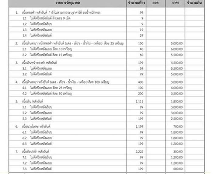 รายการที่ 6 เนื้อนวะหลังยันต์ มี 5 เหรียญ ราคาเหรียญล่ะ 1000 บาท