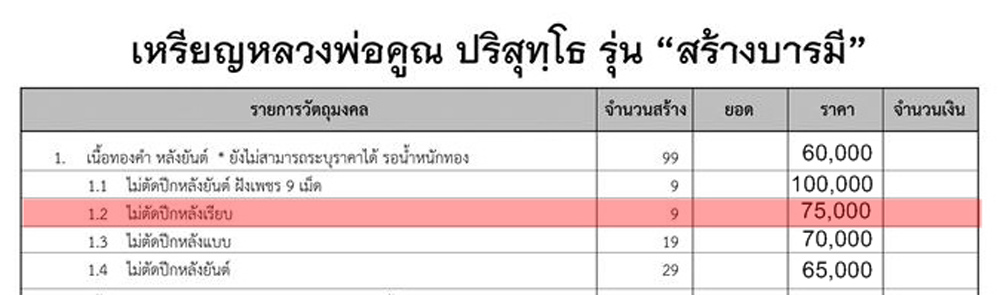 เนื้อทองคำไม่ตัดปีกหลังเรียบ จัดสร้างน้อยสุดครับ จำนวน 9 เหรียญ