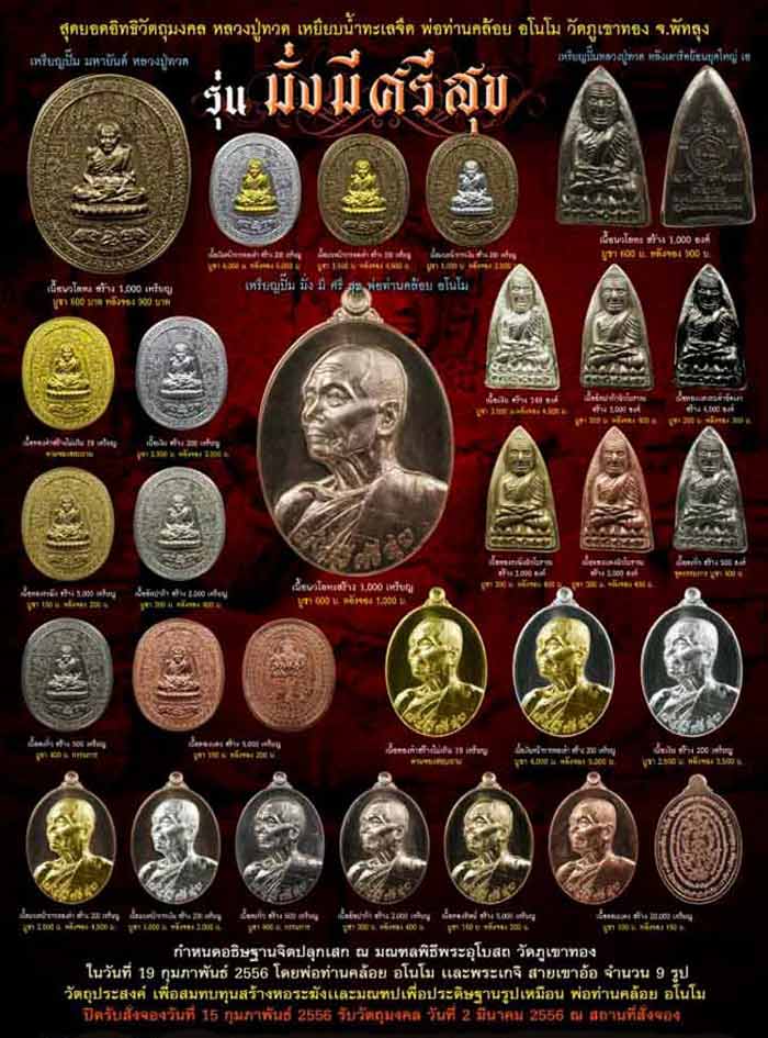 จัดสร้างวัตถุมงคล รุ่น มั่ง มี ศรี สุข เพื่อสมทบทุนสร้างหอระฆังและมณฑปเพื่อประดิษฐานรูปเหมือนพ่อท่าน