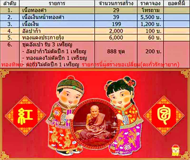 รายการที่4. เนื้ออัลปาก้า 2 เหรียญ + รายการที่6. ชุดอั่งเปา 3 เหรียญ(อั่งเปา 3 เหรียญ มีเนื้อ อัลปาก้า ทองแดง ทองทิพย์)***ไม่ตัดปีก***