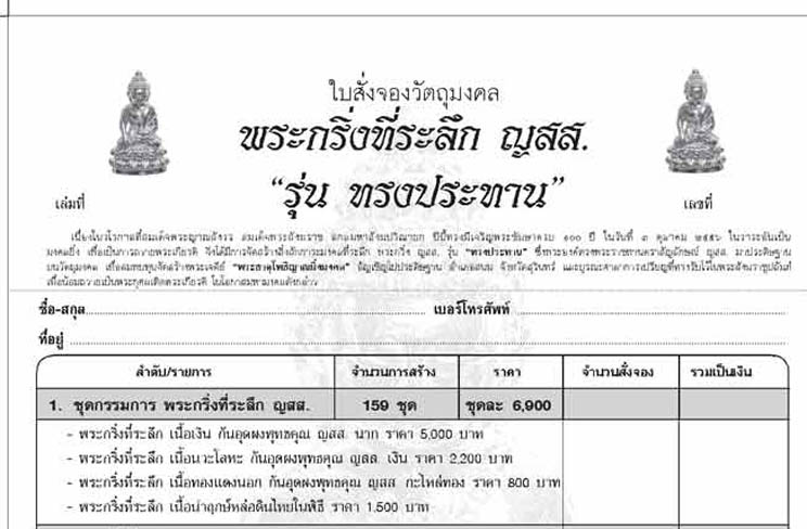 1 พระกริ่งที่ระลึก เนื้อเงิน ก้นอุดผงพุทธคุณ ญสส. นาก 1 องค์ 4,400 บาท.