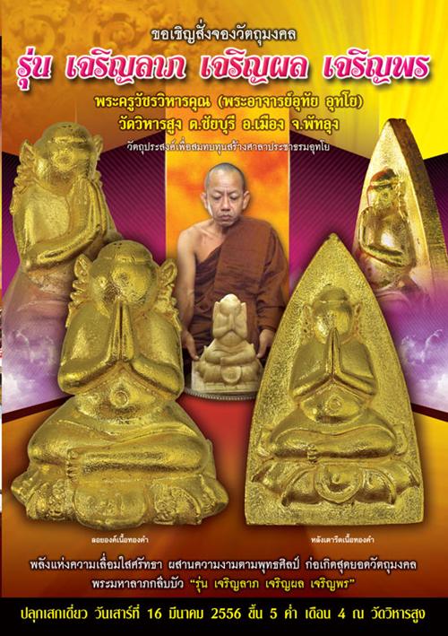 ชิญสั่งจองพระมหาลาภกลีบบัว พระครูวัชรวิหารคุณ (พระอาจารย์อุทัย อุทโย)วัดวิหารสูง ต.ชัยบุรี อ.เมือง จ.พัทลุง รุ่น เจริญลาภ เจริญผล เจริญพร