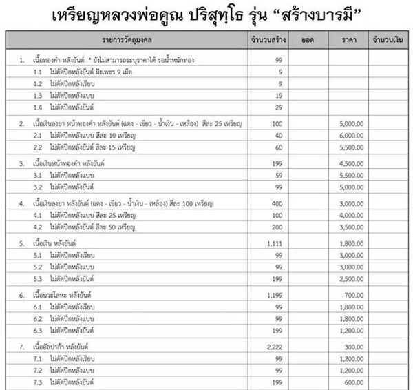 5.1. เนื้อเงิน ไม่ตัดปีกหลังเรียบ สร้าง 99 เหรียญ มี 1 เหรียญๆละ 5,000 (มีแบ่งเหรียญเดียว ครับ)