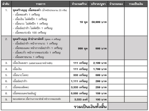 ชุดสร้างบุญ ผ้าป่าสามัคคี 1 ชุด