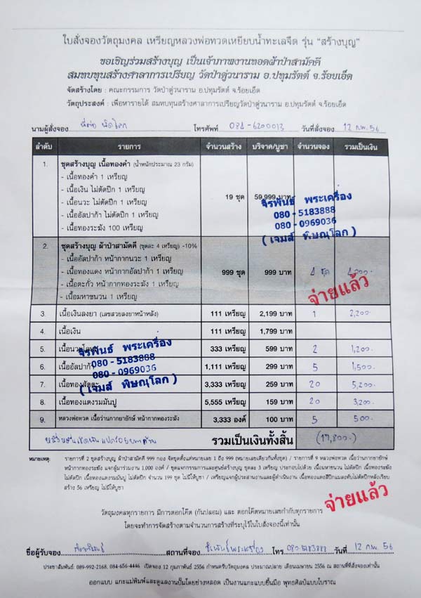 **มียอดจริงจองมาจาก จิรพันธ์พระเครื่องครับ