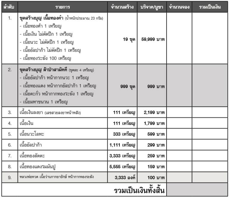 1) ชุดสร้างบุญ 1ชุด +ทองแดง 6 เหรียญ