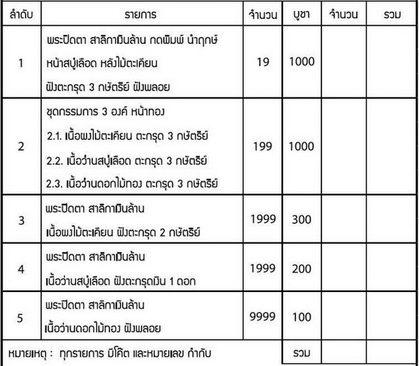 มียอด 5 ชุด ร่วมทำบุญชุดละ 500 บาท
