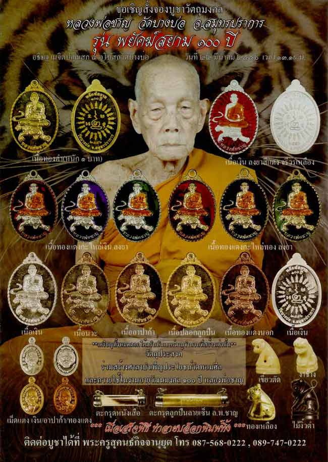 | หัวข้อกระทู้ : ๑๑๑ เชิญสั่งจองวัตถุมงคล รุ่น พยัคฆ์สยาม 100 ปี หลวงพ่อชาญ วัดบางบ่อ สมุทรปราการ ๑๑๑ |