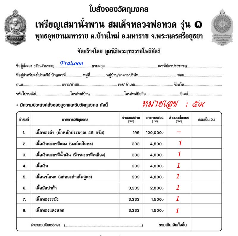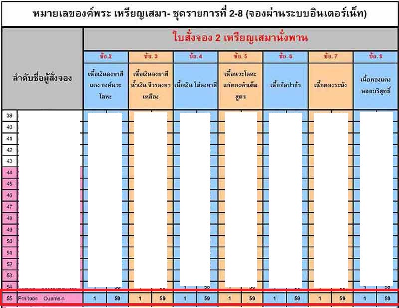 เหรียญเสมานั่งพาน รายการที่ 2-8 หมายเลข 59 รวมทั้งหมด 7 เหรียญ (เลขเดียวกันทั้งชุด) ราคา 48000 -