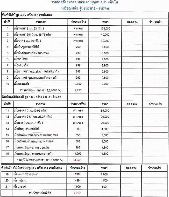 9)แผ่นหน้าชุบนาคแผ่นหลังทองระฆัง @2,500 มียอด 8 เหรียญ