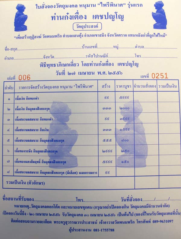 เนื้อเงิน มียอด 1 องค์ๆ ละ = 2,000 บาท