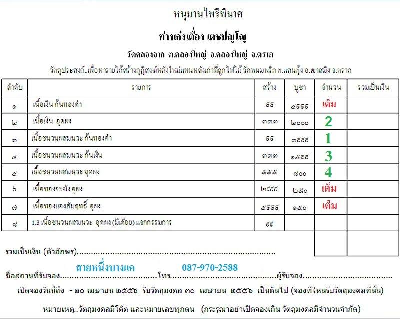 รายการที่ยังสามารถร่วมบุญ ตามนี้ ยอดหมดแล้วหมดเลยนะครับ