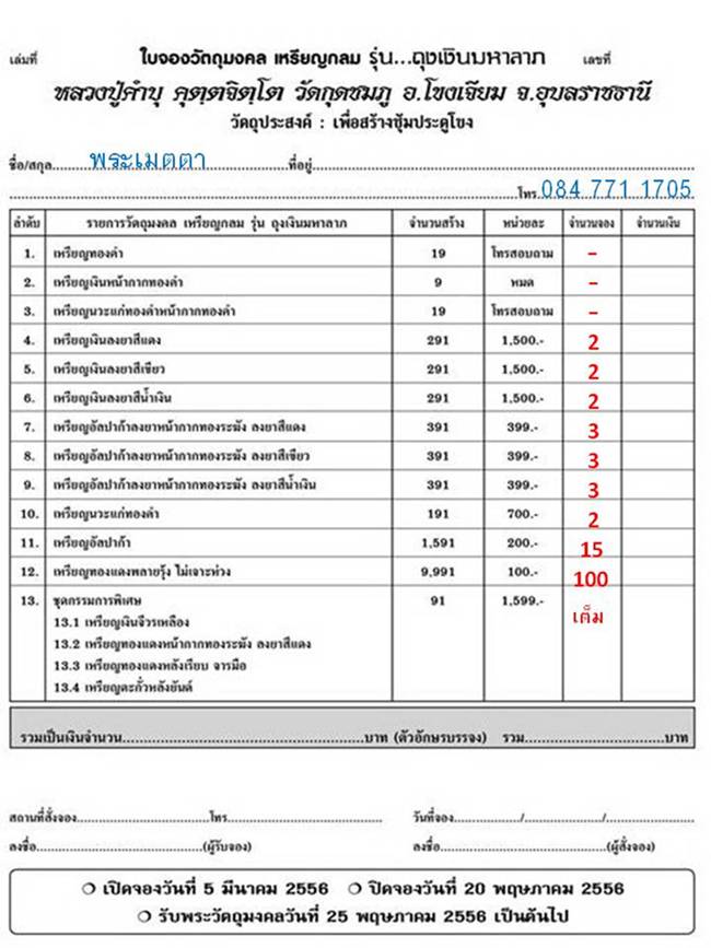 ศูนย์จองพระเมตตายินดีให้บริการ ขอบคุณครับ