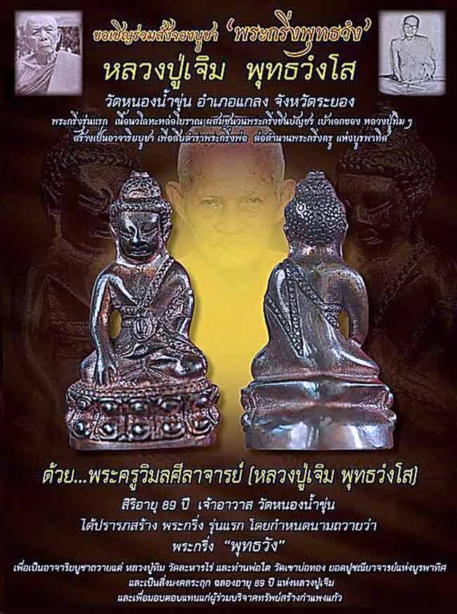 | หัวข้อกระทู้ : ๑๑๑ หลวงปู่เจิม พุทธวโส วัดหนองน้ำขุ่น จ.ระยอง "พระกริ่งพุทธวังรุ่นแรก" เชิญสั่งจองด่วน! ๑ |