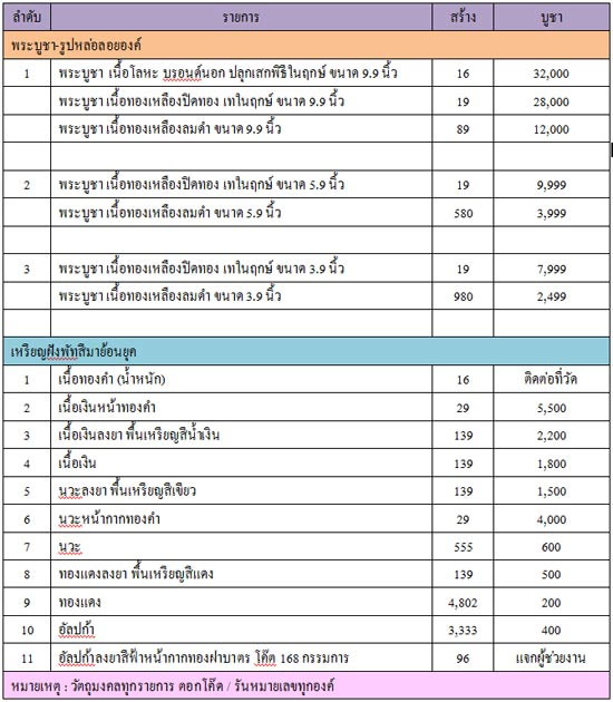 4. เนื้อนวะ สร้าง 555 เหรียญ ราคาเหรียญละ 2000 บาท มี 5 องค์