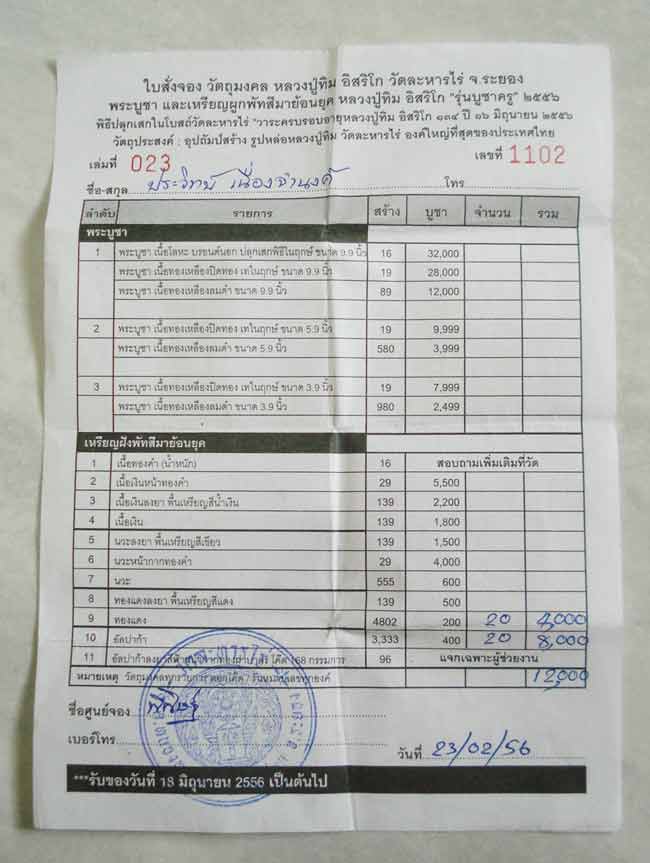 ใบจองเหรียญผูกพัทธสีมาย้อนยุค หลวงปู่ทิม "รุ่นบูชาครู"