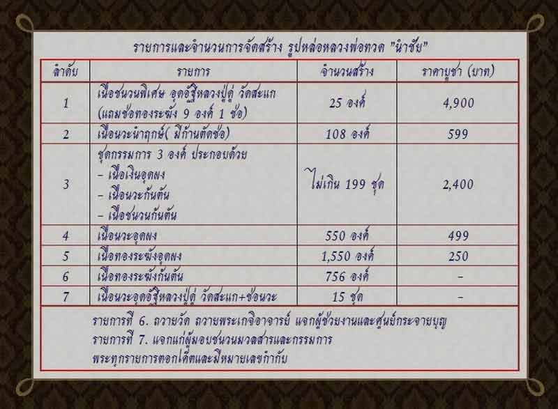 1.เนื้อนวะนำฤกษ์( มีก้านตัดช่ิอ) สร้าง 108 องค์ ราคา 599 บาท ยอด 6 องค์