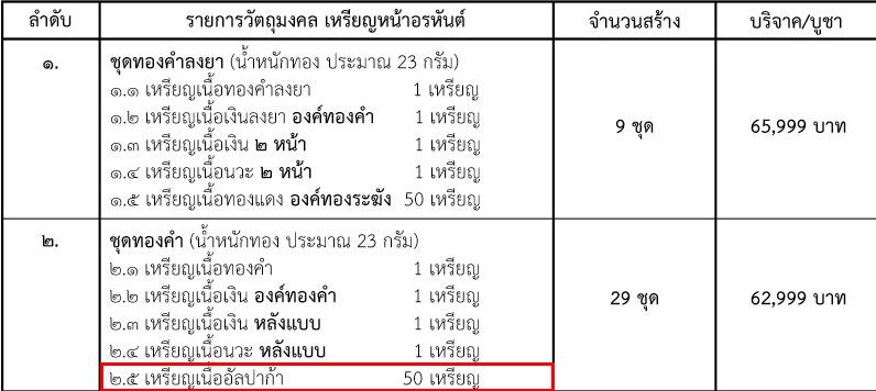 เหรียญเนื้ออัลปาก้า (ในชุดทองคำ) จำนวน 2 เหรียญ