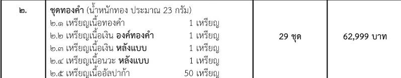 1.2 เนื้อนวะหลังแบบ (แยกชุดทองคำ) สร้างเพียง 29 เหรียญ ราคา 7,500 บาท (มียอด 1 เหรียญ)