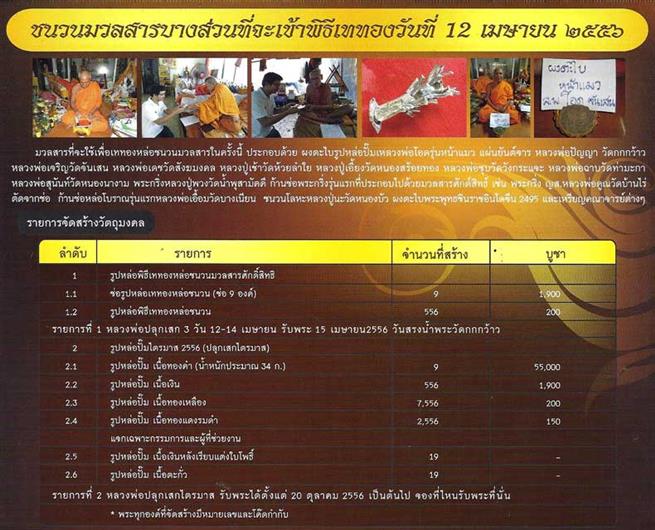 2. รูปหล่อพิธีเททองหล่อชนวนมวลสาร วันที่ 12 เม.ย 2556 (ปลุกเสก 3 วัน 3 คืน รับพระได้ตั้งแต่ 15 เม.ย.วันสรงน้ำพระประจำปีของวัด)