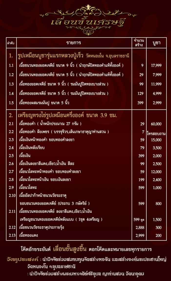 2.1 เนื้อทองคำ (น้ำหนักประมาณ 27 กรัม) สร้าง 29 องศ์ มียอด โทรสอบถาม