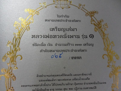 เหรียญเสมา เนื้อเงิน หลวงปู่ทวดนั่งพานรุ่น 1 ( คุณอุ๊ กรุงสยาม ) เปิด ๑๑,๐๐๐ บาท. หมายเลข 25 เลขสองหลักครับพร้อมบัตรรับรองครับสบายใจได้