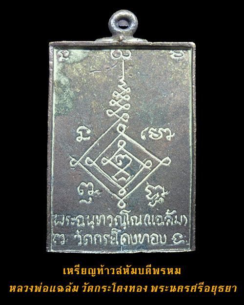 วัตถุประสงค์ในการจัดสร้าง : เพื่อเป็นที่ระลึก ฉลองอายุวัฒนมงคล 90 ปี หลวงพ่อแฉล้ม และนำรายได้ส่วนหนึ่งสมทบทุนถวายเป็นค่ารักษาพยาบาลโรคหัวใจของหลวงพ่อ