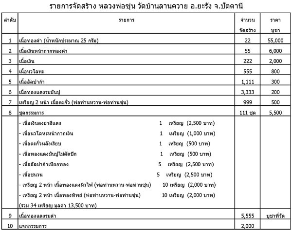 เปิดจอง หลวงพ่อซุ่น วัดบ้านลานควาย อ.ยะรัง จ.ปัตตานี ราคาวัดค่ะ