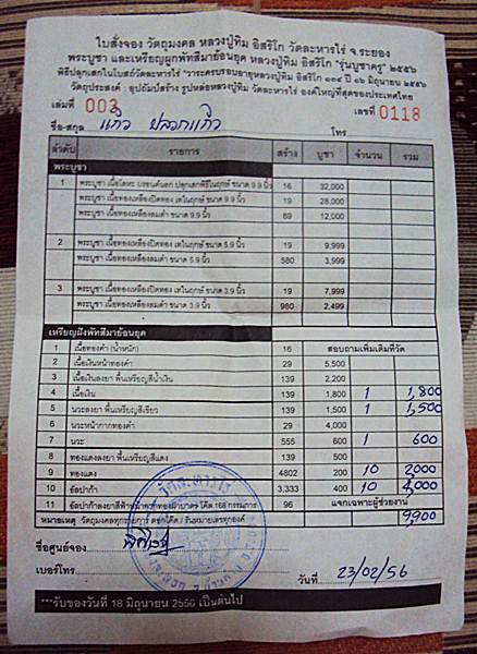 ท่านใดสนใจปิดได้เลยครับรวมค่าจัดส่งแล้วครับ เดือนหน้าพระออกจัดส่งให้ทันทีครับใบจองมือแรกครับผมจะไปรับพระเองที่วัดประมาณ มิถุนายน 2556