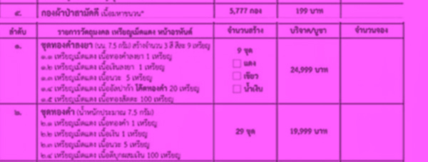 รายการ ชุดผ้าป่าสามัคคี+เม็ดแตง(ในชุด ทองคำลงยา+ทองคำ)