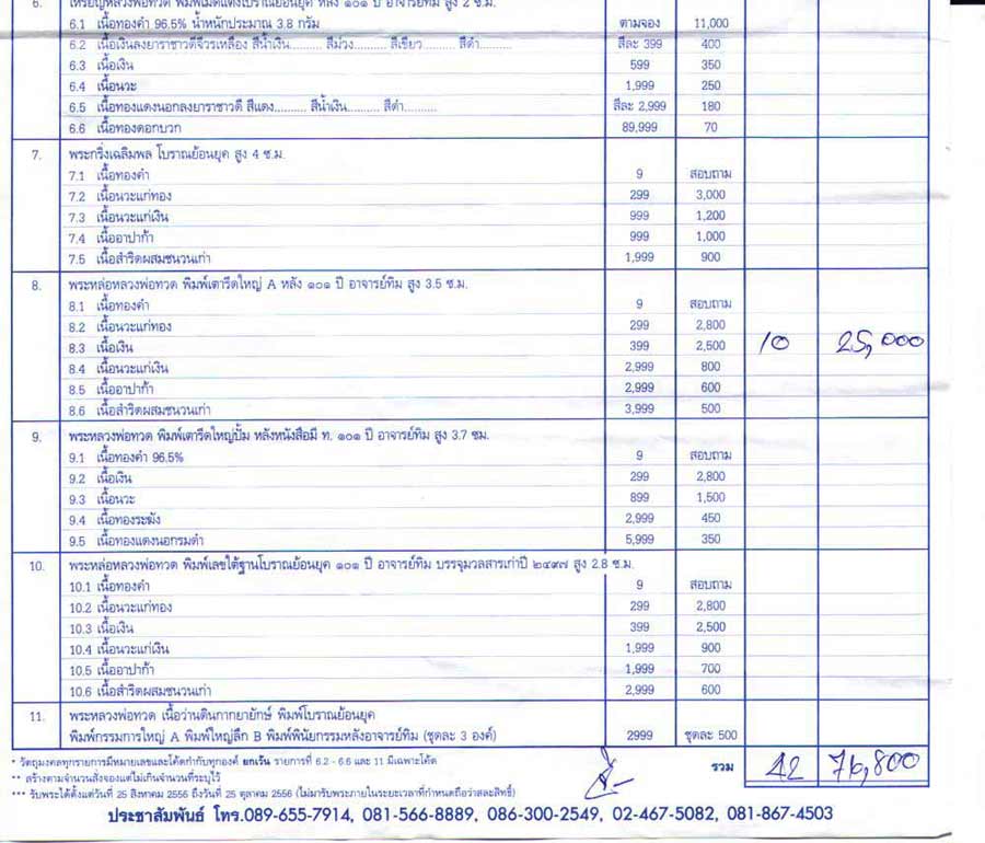 รายการที่ 8.3 เนื้อเงิน มี 5 องค์ ราคา องค์ ละ 3,500 บาท