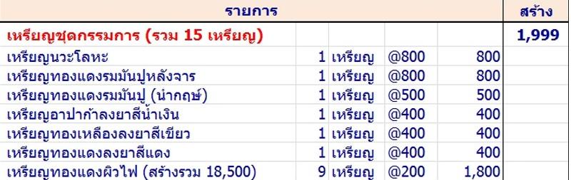 1. ชุดกรรมการ (รับพระ 15 เหรียญ) มี 10 ชุดๆ ละ 1,700 บาท