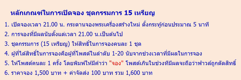 สรุปผลการจองผมจะแจ้งให้ทราบในกระทู้ที่เปิดจองและจะตั้งกระทู้แจ้งให้ทราบอีกครั้งอย่างเป็นทางการในกระดานประชาสัมพันธ์พระเครื่องนะครับ