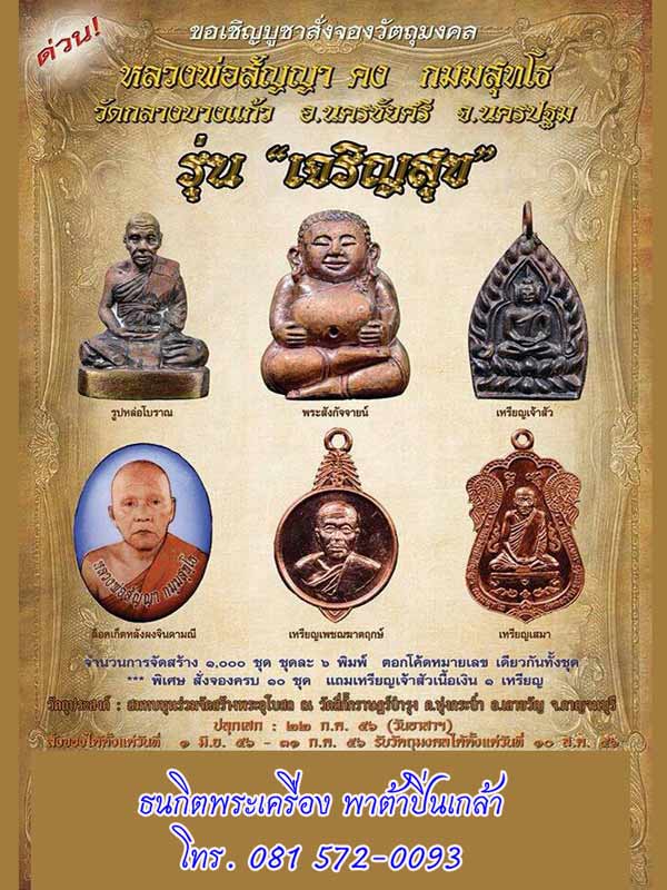 เปิดจอง!!!วัตถุมงคล หลวงพ่อสัญญา คง กมมสุทโธ รุ่น "เจริญสุข" วัดกลางบางแก้ว จ.นครปฐม