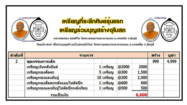 ขอบคุณทุกท่านที่ได้มีส่วนร่วมในการจองเหรียญร่วมบุญสร้างอุโบสถ ลพ.ทอง วัดพระพุทธบาทเขายายหอมในครั้งนี้