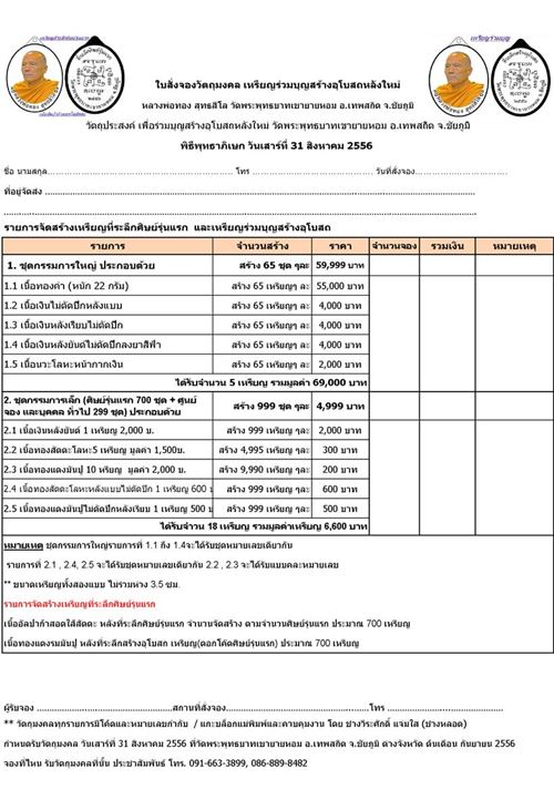 ศูนย์จองพระเมตตายินดีให้บริการ ขอบคุณครับ โทร.084-7711705 , 081-1353800 , 02-7380101 |
