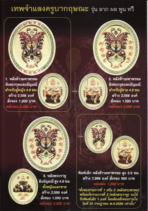 ***พิเศษ ผู้ที่สั่งจองรายการที่ 1 หรือ 2 (หลังพระพรหม) พร้อมกับรายการที่ 3(หลังพระราหู) จะได้รับรายการที่ 4 จำนวน 1 องค์ โดยต้องสั่งจองภายในวันที่ 31 กรกฏาคม 56 นี้