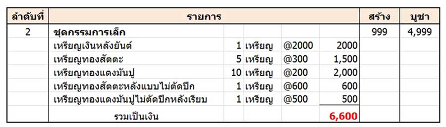 - เนื้อทองแดงมี 20 เหรียญ เหรียล่ะ 300 บาท