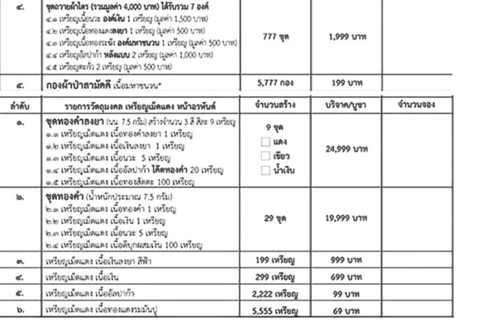 เนื้อมหาชนวน 3 เหรียญ ราคารวม 1500 บาท
