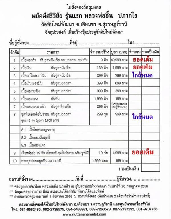 สนใจติดต่อสั่งจองได้ครับ TEL.083-045-3838 รับพระแน่นอน รวดเร็ว |