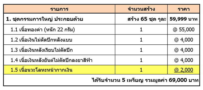ขอแก้ไขรายการที่ 1.5 เป็นเหรียญเนื้อเงินหน้าทองคำลงยาเขียว 1 เหรียญแทน
