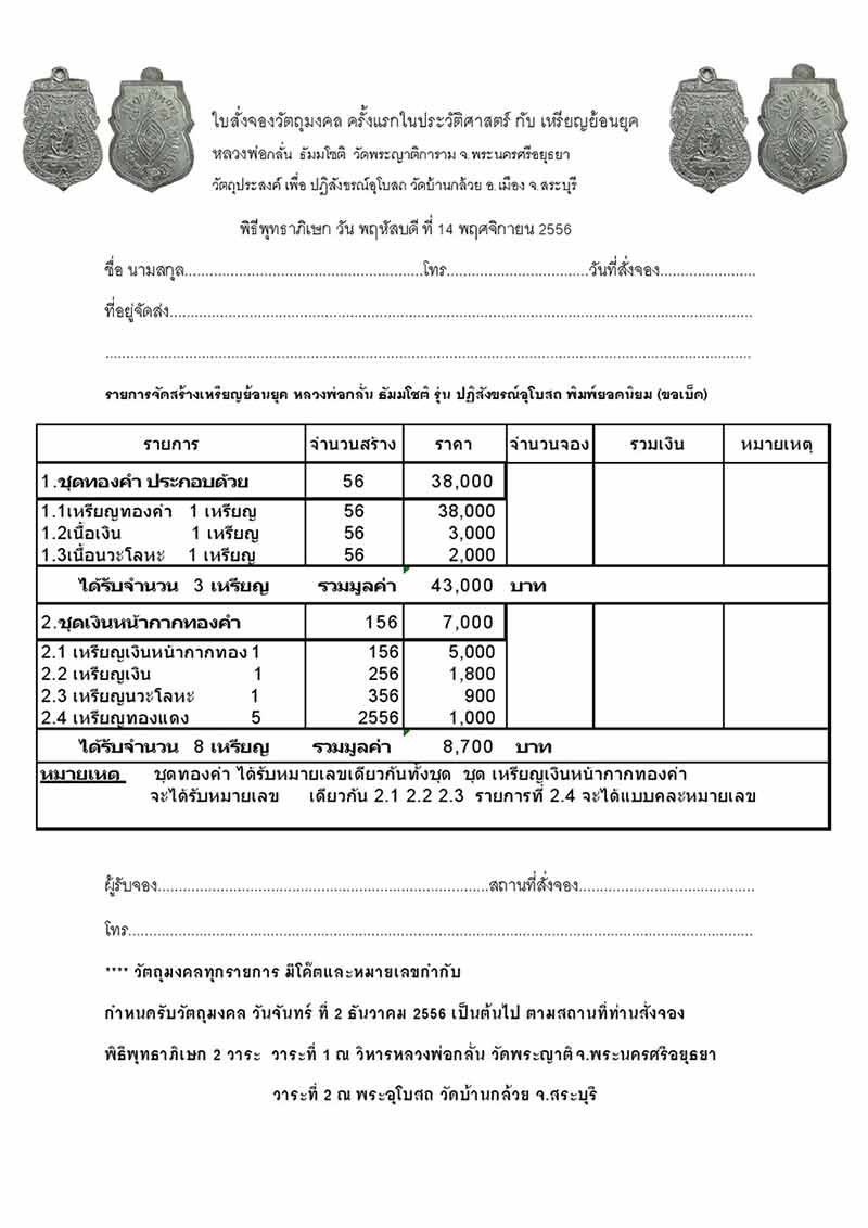 ชุดทองคำ มียอด 1 ชุด ได้รับพระ 3 เหรียญ ราคา 65000บาท