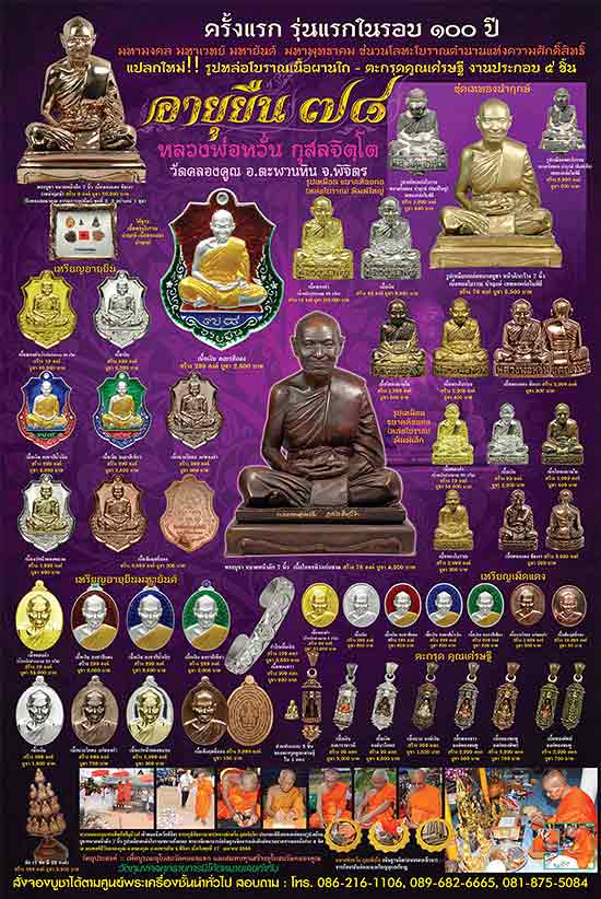 ในมงคลโอกาสแห่งอายุกาล ๗๘ ปี หลวงพ่ออนุญาตให้จัดสร้างวัตถุมงคล ดัง-ขลัง-ดี รุ่น อายุยืน ๗๘ ด้วยรูปลักษณ์เหรียญอายุยืน พิมพ์อาร์ม ,เหรียญอายุยืนมหายันต์,รูปหมือนบูชาหน้าตัก ๗ นิ้ว, รูปเหมือนห้อยคอหล่อโบราณ พิมพ์ใหญ่-พิมพ์เล็ก,เหรียญเม็ดแตง เครื่องรางกำไล และตะกรุดคูณเศรษฐี วัตถุประสงค์เพื่อบูรณะอุโบสถวัดคลองแขกที่ท่านให้ความอุปถัมภ์ และสมทบทุนสร้างอุโบสถวัดคลองคูณ