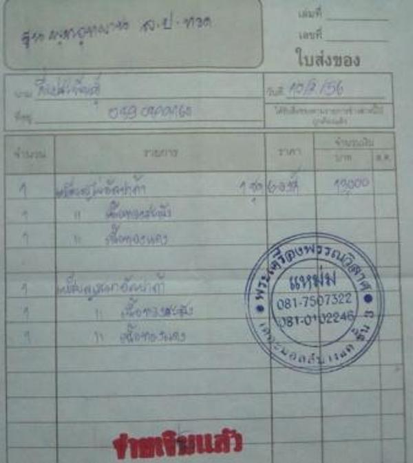 **หมายเหตุ หมายเลขและใบกำกับได้รับตอนรับพระครับ**