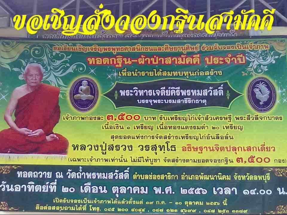 ขอเชิญร่วมทำบุญเป็นเจ้าภาพกฐินผ้าป่าสามัคคี ลป.สรวง วรสุทฺโธ วัดถ้ำพรหมสวัสดิ์ จ.ลพบุรี