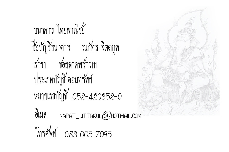 ค่าจัดส่ง EMS ครั้งละ60บาท(กี่องค์ก็ได้จ้ะ) โอนภายใน 2 วัน |