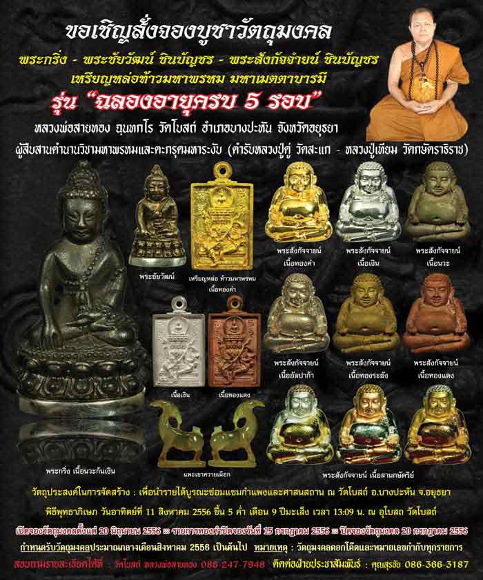 | หัวข้อกระทู้ : ๑๑๑ เชิญสั่งจองวัตถุมงคลรุ่น ฉลองอายุครบ 5 รอบ หลวงพ่อสายทอง ฉฺนทกโร วัดโบสถ์ จ.อยุธยา ๑๑๑ |