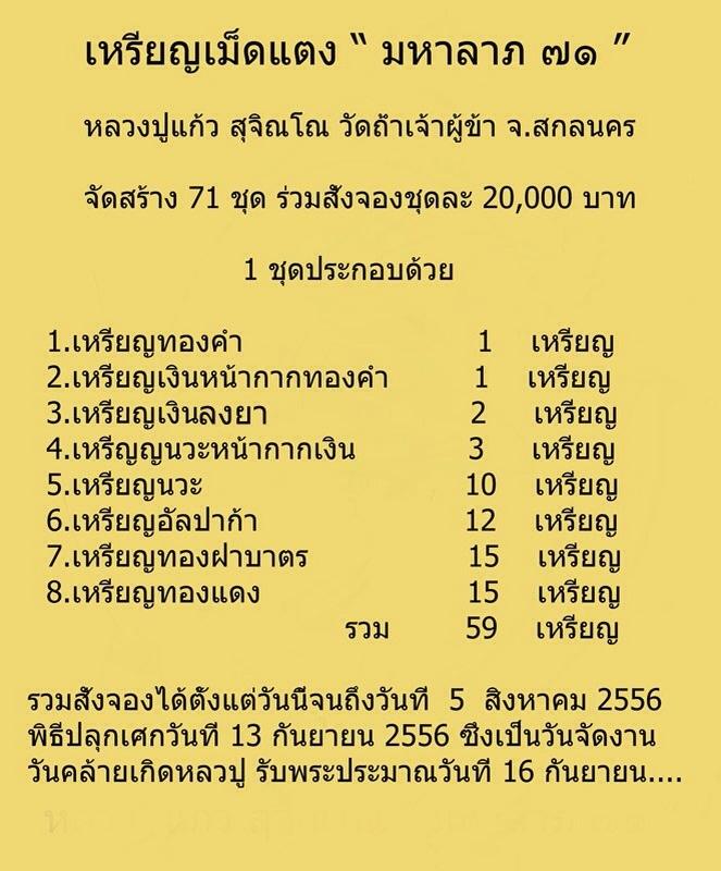 จัดสร้าง71ชุด ชุดละ20,000บาท รับเหรียญ30เหรียญ