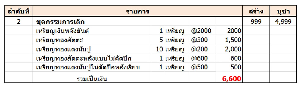- เหรียญทองสัตตะ 1 เหรียญ มูลค่า 300 บาท