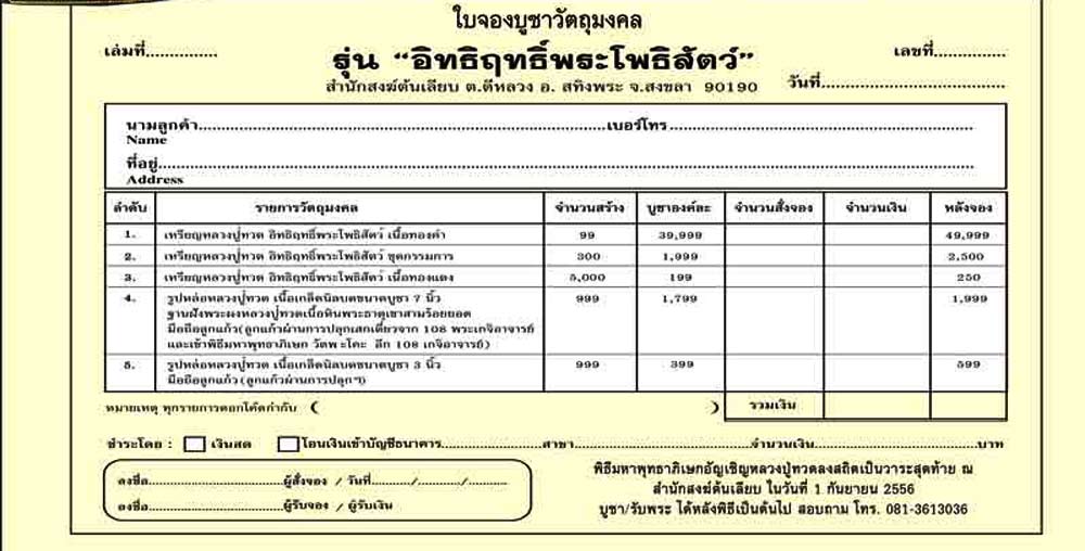 ขนาดบูชา ๓ นิ้ว จององค์ละ ๓๙๙ บาท หลังจององค์ละ ๕๙๙ บาท